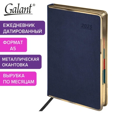 Ежедневник датированный 2025 А5 148х218 мм GALANT 'Infinity Gold', под кожу, темно-синий, 115729