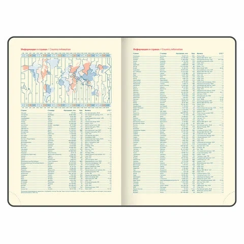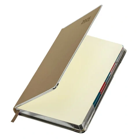 Дополнением является закладка-ляссе, с помощью которой при необходимости можно быстро открыть ежедневник на нужной странице, а также вырубка по месяцам. Помимо прочего, ежедневник снабжен обширным справочным материалом. В конце ежедневника есть 6 страниц для записей и заметок. Выполнен в бежевом цвете.