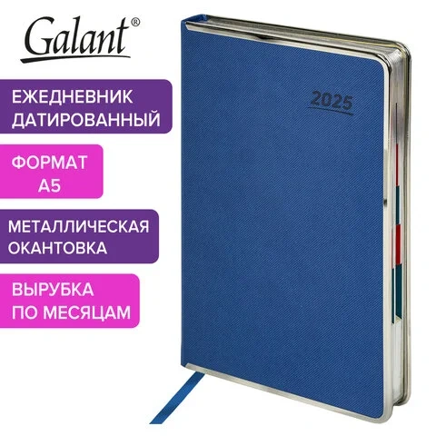 Ежедневник датированный 2025 А5 148х218 мм GALANT 'Infinity Silver', под кожу, синий, 115721