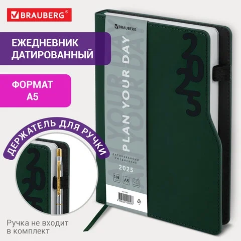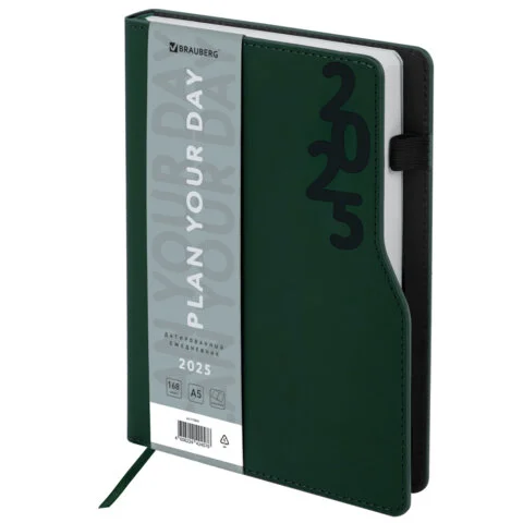 Ежедневник датированный 2025, А5, 150x213 мм, BRAUBERG 'Up', под кожу, софт-тач, держатель для ручки
