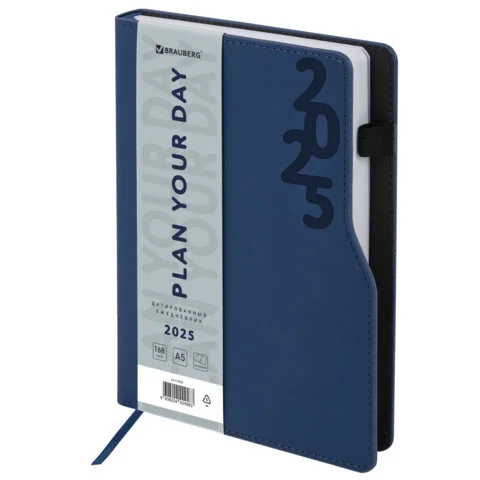 Ежедневник датированный 2025, А5, 150x213 мм, BRAUBERG 'Up', под кожу, софт-тач, держатель для ручки