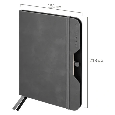 Внутренний блок включает 168 листов кремовой бумаги плотностью 70 г/м2. Каждая страничка имеет перфорированный угол. Благодаря классическому формату А5 (151х213 мм) ежедневник удобно использовать как в офисе, так и на выездных деловых встречах.