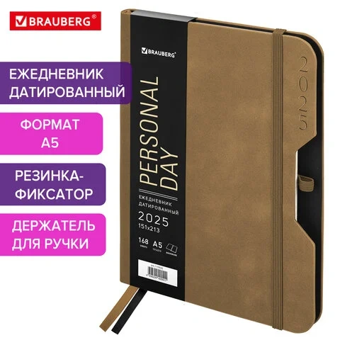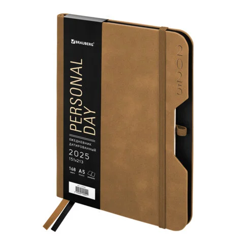 Ежедневник датированный 2025, А5, 151х213 мм, BRAUBERG 'Note', под кожу, держатель для ручки, резинк