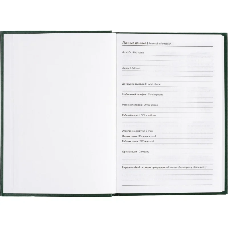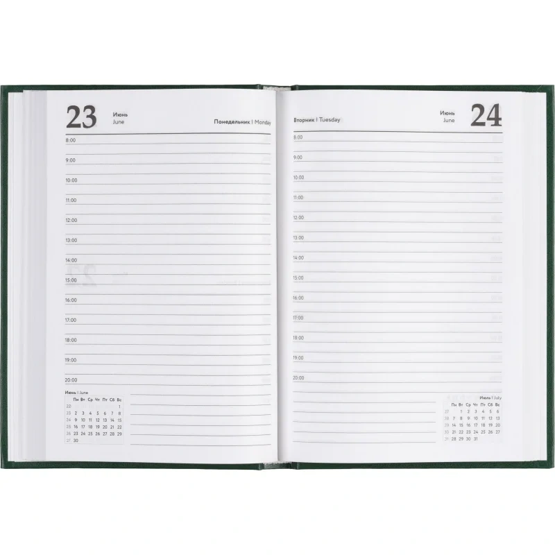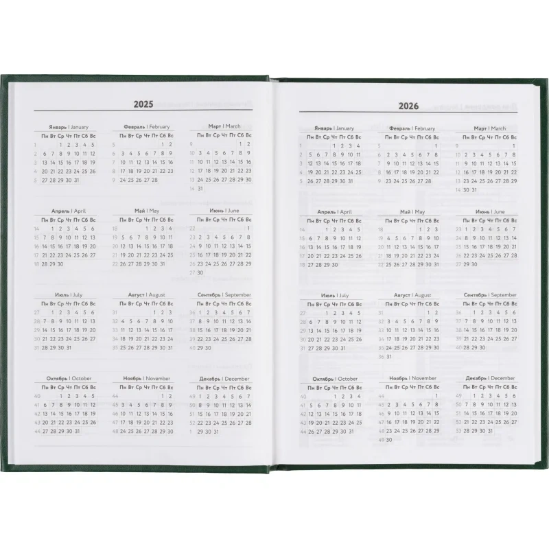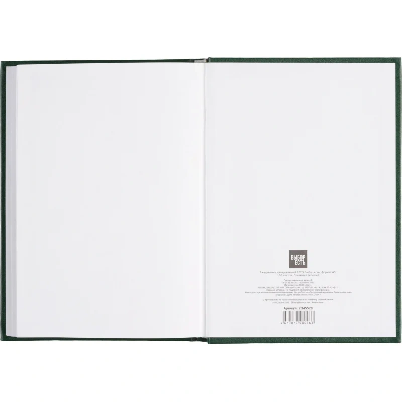 Ежедневник датированный 2025 год Выбор есть бумвинил А5 160 листов зелёный Предназначен для планирования дел и записи важных событий. Он отлично подойдет для использования в офисе и повседневной жизни. Твердая обложка зеленого цвета, материал изготовления - бумвинил. Дизайн обложки универсальный, офисный. Тип крепления тип крепления - сшивка, которая надежно фиксирует блок. Данный ежедневник имеет формат А5. В нем 160 листов из белой офсетной бумаги плотностью 55 г/кв.м. Печать в блоке выполнена в одну краску, а цвет обреза - белый. Вид линовки - линейка. Размер: 14x20 см. Блок датирован на 2025 год. На один будний день выделена одна страница с временным интервалом в 1 час с 8:00 до 20:00. В ежедневнике нет петли для ручки, что стоит учитывать при выборе. Содержит информационно-справочный блок, включающий личные данные, календарь на 2025 и 2026 год, раздел "планирование на год", информацию о днях рождения, праздниках России и единицах измерения. Также предусмотрены разделы "питание и расход калорий", "товарный штрих-код производителя" и контактные данные служб первой необходимости. Ежедневник "Выбор есть" будет незаменим в организации рабочего процесса и запоминаемых моментов.