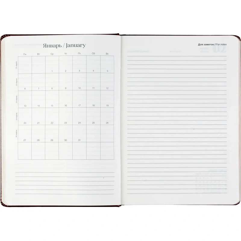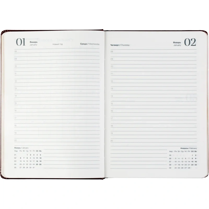 Ежедневник датированный 2025 год InFolio искусственная кожа А5 176 листов коричневый (золотистый обрез). Предназначен для организации дел, планирования задач и ведения записей. Он станет незаменимым помощником в офисе и в повседневной жизни. Обложка выполнена из гладкой натуральной рециклированной кожи с прострочкой по периметру. Твердая обложка имеет классический дизайн в коричневом цвете и украшена золоченым обрезом. Уголки скруглены. Стиль обложки универсальный. Формат ежедневника составляет А5. Он удобно помещается в сумке и обеспечит необходимую компактность. Датированный внутренний блок содержит 176 листов, выполненных из тонированной офсетной бумаги плотностью 70 г/кв.м. Обрез золотой. Тип крепления - сшивка. Печать блока в 1 краску. Тип линовки - линейка. Размер: 14х20 см. Внутреннее оформление предоставляет полезные элементы: титульный лист, календари на 2025-2026 гг, раздел "планы на год", а также развороты для заметок перед и после основного блока. Удобный планер расположен перед каждым месяцем. Ежедневник также оборудован двумя атласными закладками, которые помогут быстро находить нужные развороты. Эта модель станет практичным и стильным аксессуаром, подчеркивающим статус и вкус владельца. Она идеально подходит в качестве подарка для солидного мужчины.