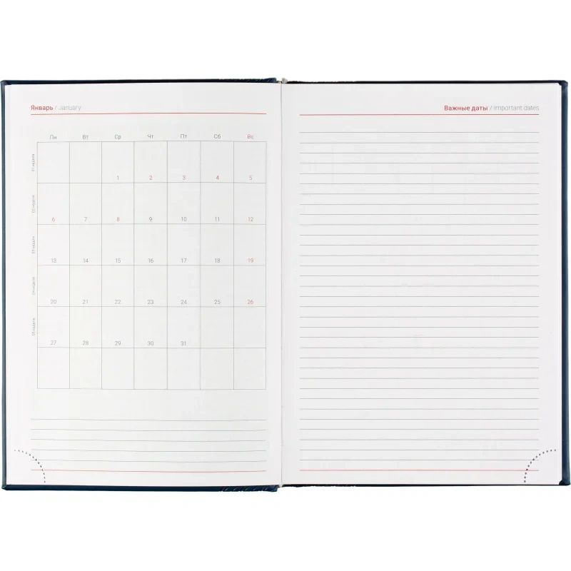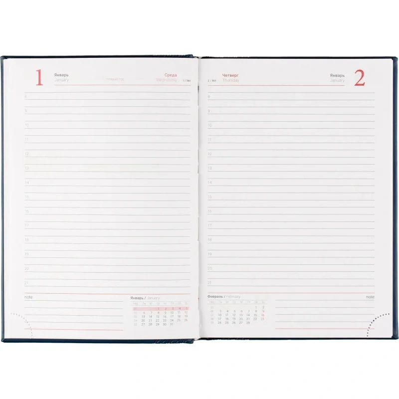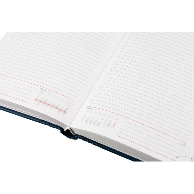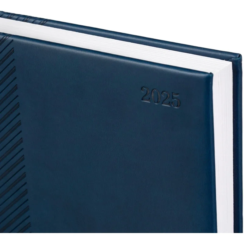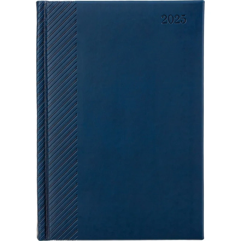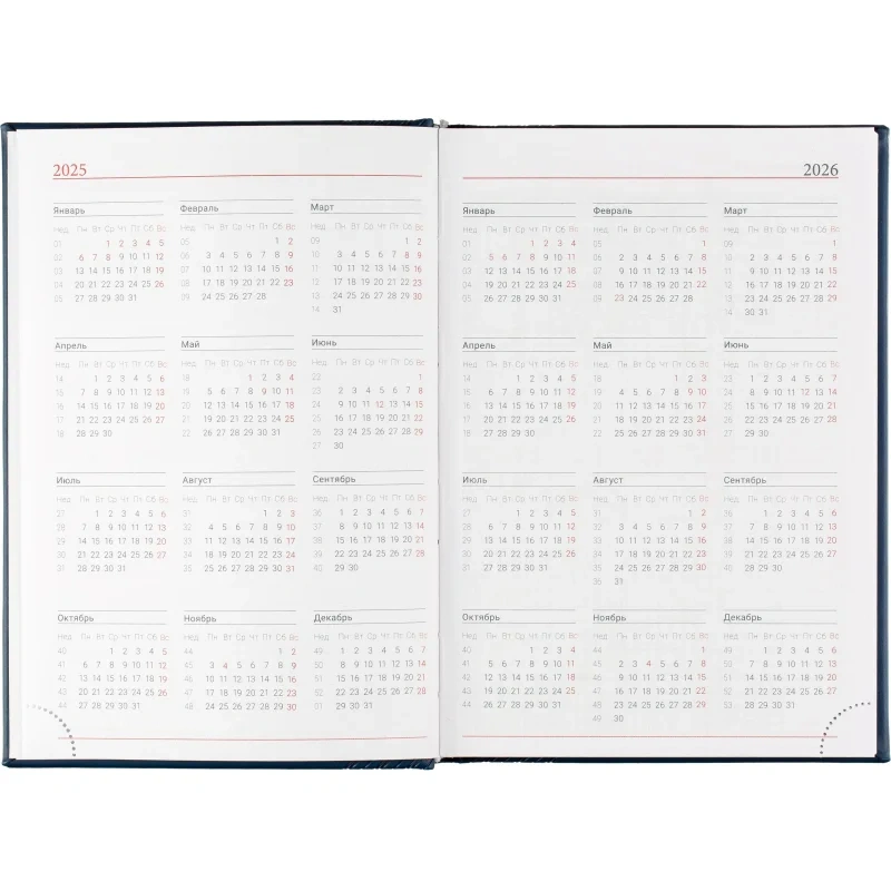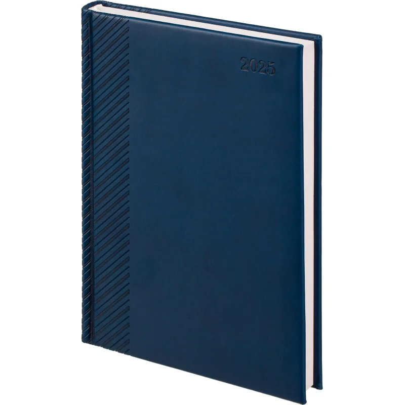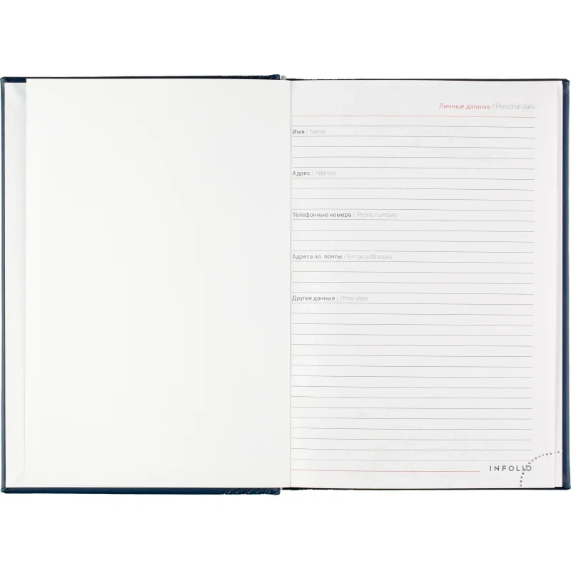 Ежедневник датированный 2025 год InFolio Velure искусственная кожа тиснение A5 176 листов синий. Ежедневник предназначен для планирования дел и организации личного времени. Он станет незаменимым помощником в офисе и дома, отражая индивидуальность владельца. Твердая обложка выполнена из тактильно приятной искусственной кожи с классическим дизайном. Стильный темно-синий цвет и изысканное тиснение по корешку делают ее универсальной и подходящей для офисного окружения. Данный ежедневник имеет формат A5 и включает 176 листов, выполненных из высококачественной белой офсетной бумаги плотностью 70 г/кв.м. Внутренний блок содержит титульный лист, календари на 2025-2026 гг., раздел "планы на год", а также развороты для заметок в начале и конце блока. Перед каждым месяцем предусмотрен планер. Тип крепления - сшивка. Печать блока в 2 краски. Вид линовки - линейка. Размер: 14х20 см. Дополнительно имеется одна атласная закладка для удобства навигации по страницам. Такой ежедневник станет не только функциональным инструментом, но и стильным аксессуаром.
