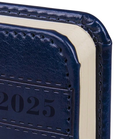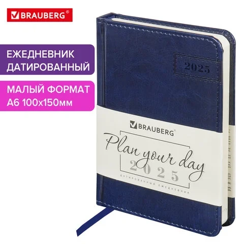 Ежедневник датированный 2025 МАЛЫЙ ФОРМАТ 100х150 мм А6, BRAUBERG 'Imperial', под кожу, синий, 11574