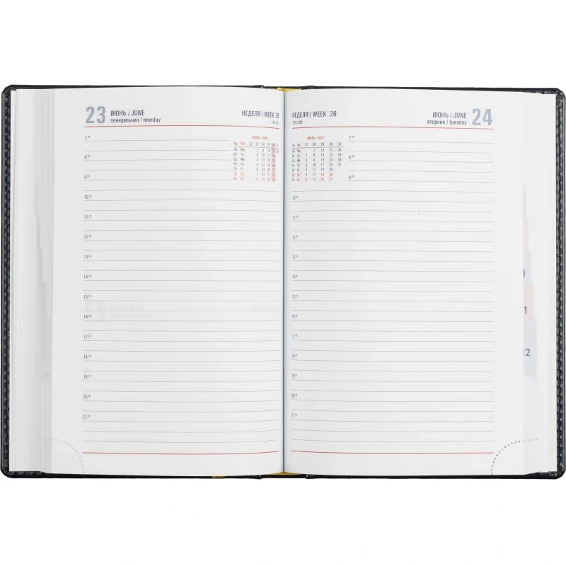 Ежедневник датированный 2025 год Attache Каньон искусственная кожа А5 180 листов синий. Это идеальный помощник для организации ваших дел и записи важных событий. Он подойдет для использования как в офисе, так и в повседневной жизни. Обложка ежедневника выполнена из искусственной кожи высокого качества. Твердая обложка прошита по периметру, что обеспечивает долговечность и стильный внешний вид. Цвет обложки - классический синий. У нее универсальный дизайн. Формат листов: А5. Блок включает 180 листов из белой офсетной бумаги плотностью 70 г/кв.м. Есть перфорация уголка страниц. Тип крепления - сшивка. Печать блока в 2 краски. Вид линовки - линейка. Размер: 14.2х21 см. Ежедневник оснащен алфавитным блоком без вырубки. Закладка-ляссе позволяет быстро вернуться к нужной странице. Также в комплект входит дополнительный блок с различными календарями на 2025-2028 годы. Ежедневник Attache предоставляет возможность нанесения логотипа. Он станет отличным выбором для ведения записей и организации рабочего процесса.