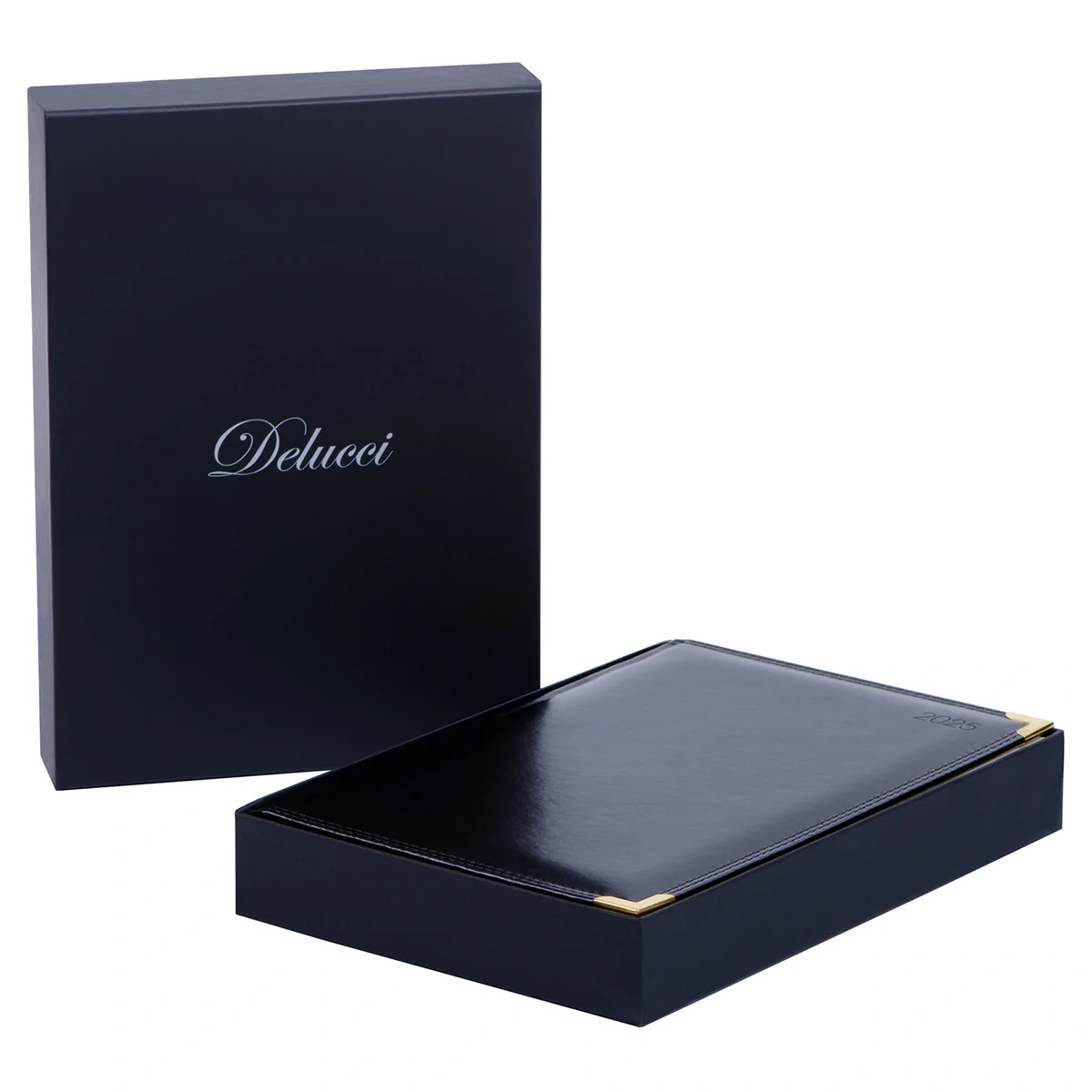 Ежедневник датированный 2025г., А4-(В5), 184л., Delucci, Гладкая кожа, зол. срез, черный