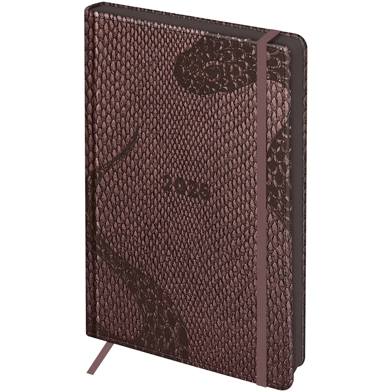 Ежедневник датированный на 2025 BG 'Pythone' – это не только практичный помощник, но и стильный аксессуар. Тиснение с символом года – змеёй – на имитированной под рептилию экокоже смотрится лаконично. Такое изделие подчеркнёт статус и изысканный вкус владельца.