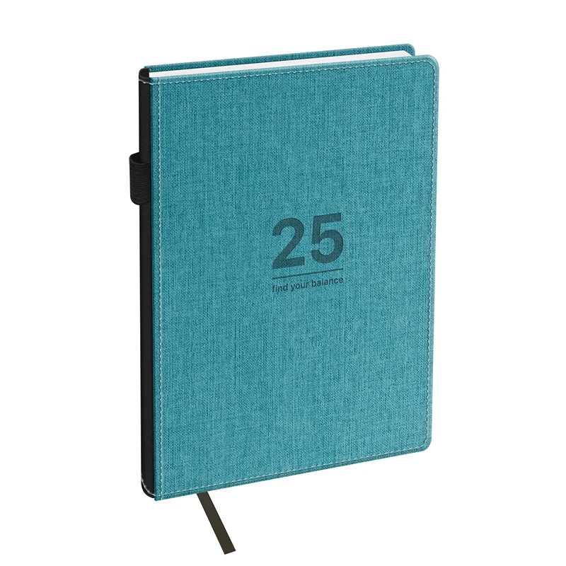 Ежедневник датированный на 2025 год BG серии 'Fillsta' – идеальный компаньон для стильной и организованной жизни. Твёрдая обложка изготовлена из бирюзовой экокожи, стилизованной под ткань. Мотивирующая фраза, нанесённая с помощью тиснения, добавит позитивных эмоций.