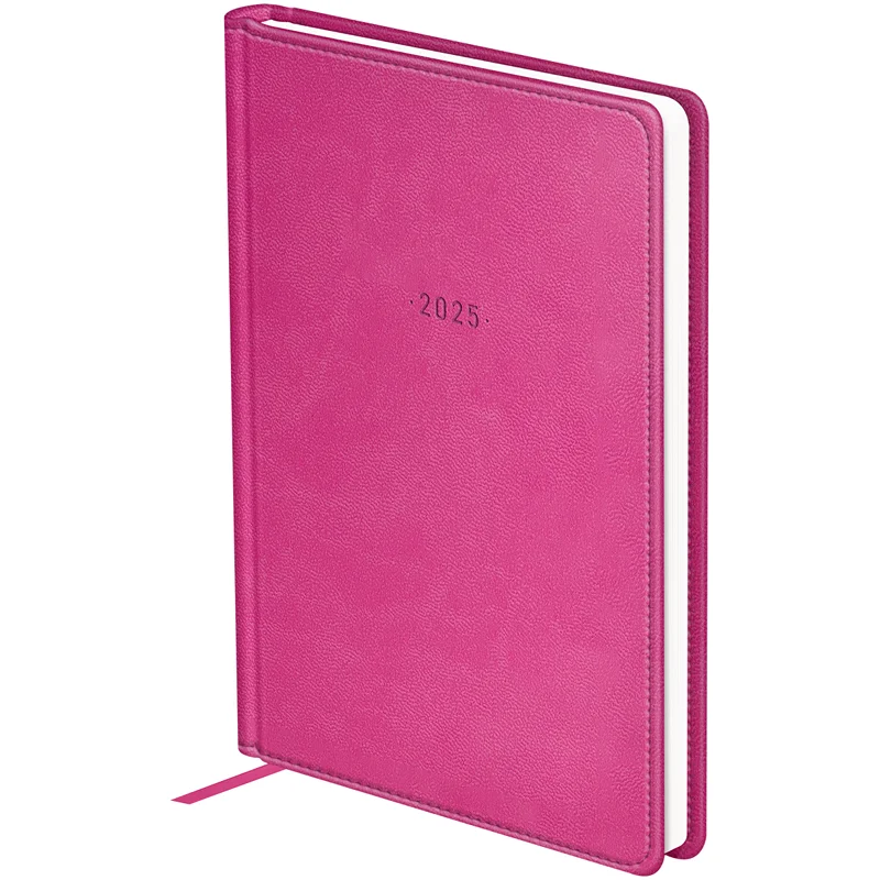 Элегантный датированный ежедневник на 2025 год BG формата А5 серии 'Winner.Fuchsia' в твёрдой обложке ярко-розового цвета, выполненной из высококачественной экокожи с гладкой матовой поверхностью и поролоновой прослойкой. Внутренний блок состоит из 176 листов офсетной бумаги плотностью 70 г/м2 с печатью в 2 краски. Датированный ежедневник представлен в размере 145*205 мм.