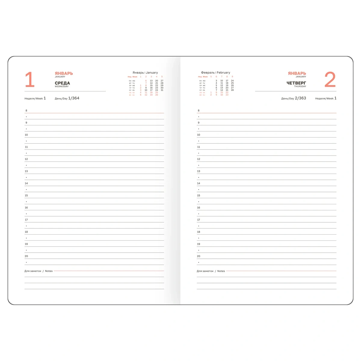 Перфорированные уголки и закладка-ляссе обеспечат комфорт и удобство при использовании ежедневника. В ежедневнике предусмотрена справочная информация, таблицы, календарь на 4 года и другие полезные сведения. Датированный ежедневник подходит под персонализацию. Индивидуальная упаковка в термоусадочную пленку.