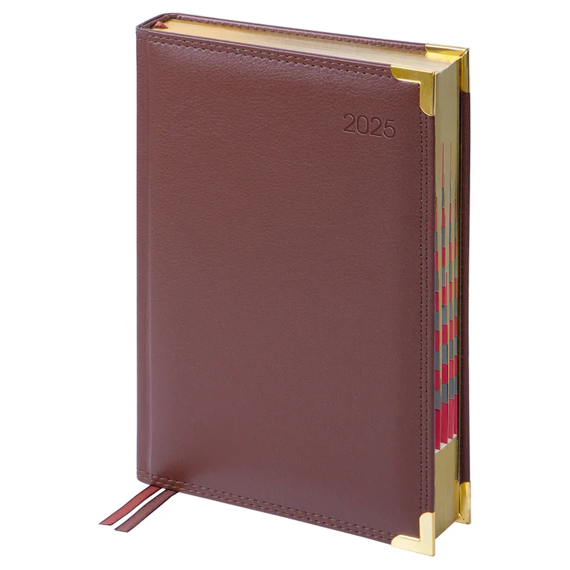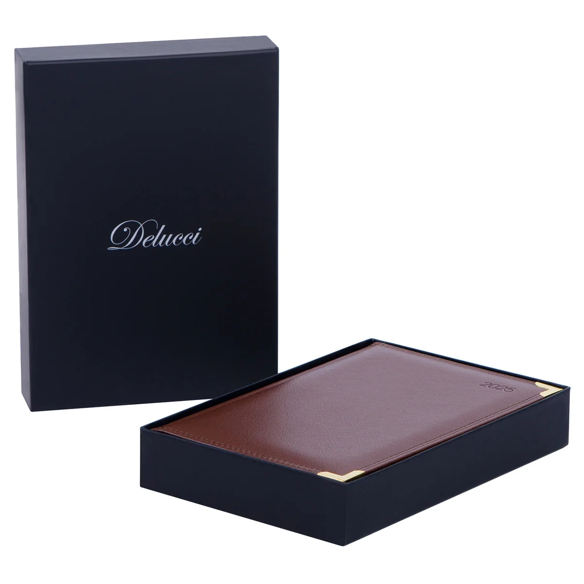 Ежедневник датированный 2025г., А5, 184л., Delucci, Фактурная кожа, зол. срез, коричневый