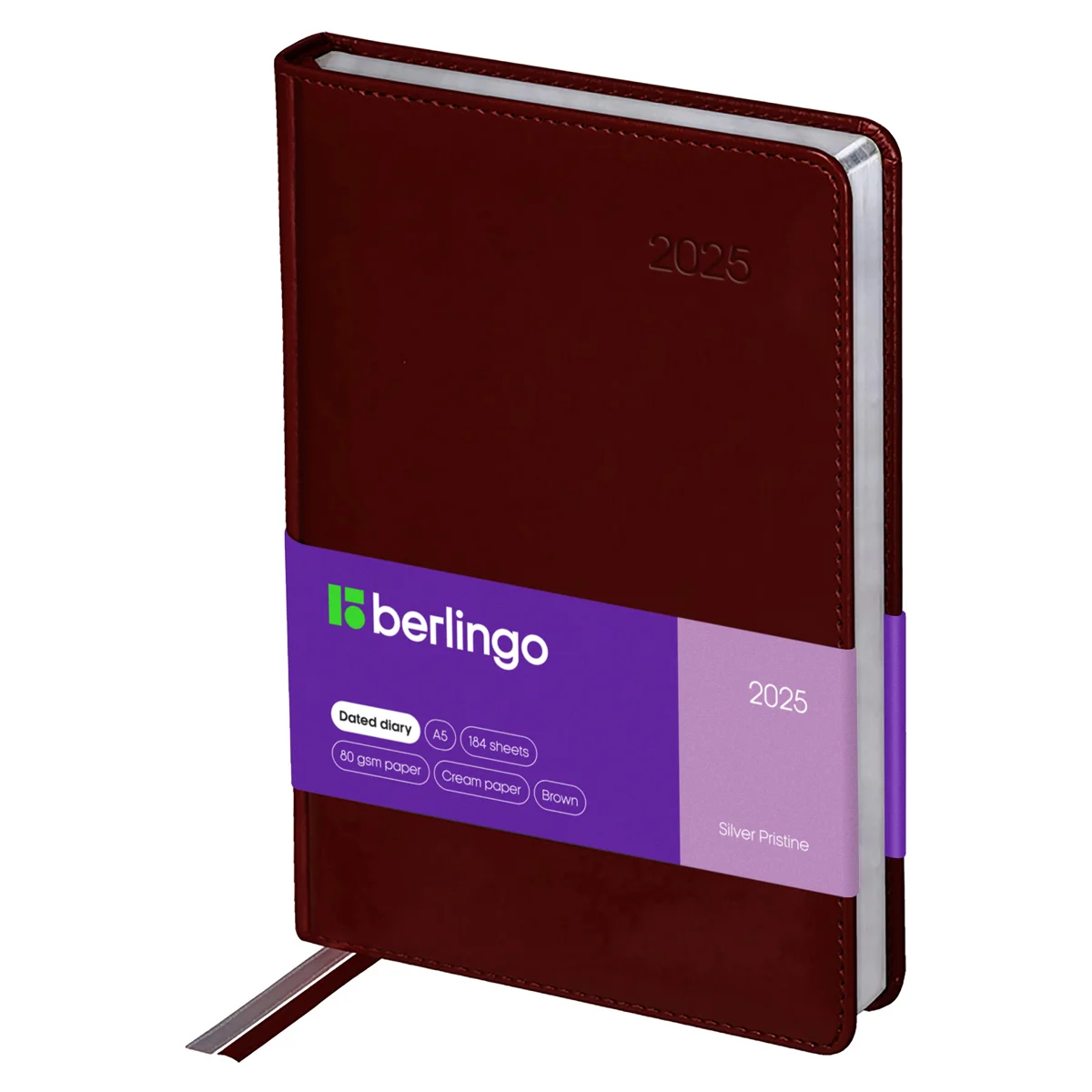 Ежедневник датированный 2025г., А5, 184л., кожзам, Berlingo 'Silver Pristine', сер. срез, коричневый