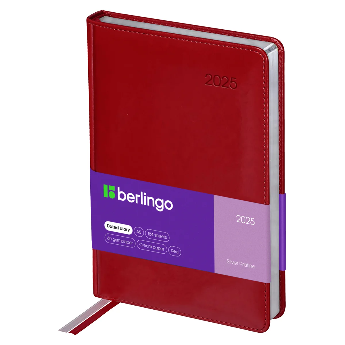 Ежедневник датированный 2025г., А5, 184л., кожзам, Berlingo 'Silver Pristine', сер. срез, красный