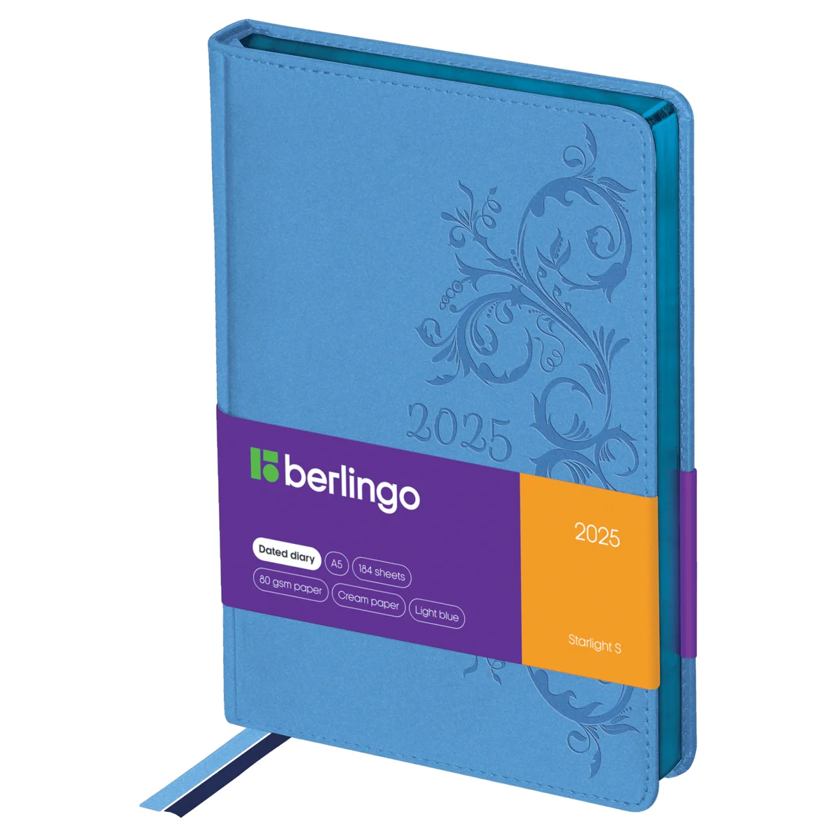 Ежедневник датированный 2025г., А5, 184л., кожзам, Berlingo 'Starlight S', металлик срез, голубой