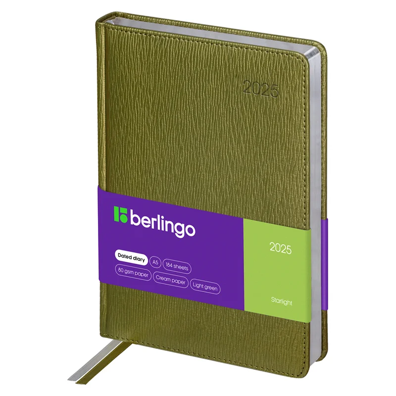 Ежедневник датированный 2025г., А5, 184л., кожзам, Berlingo 'Starlight', сер. срез, салатовый