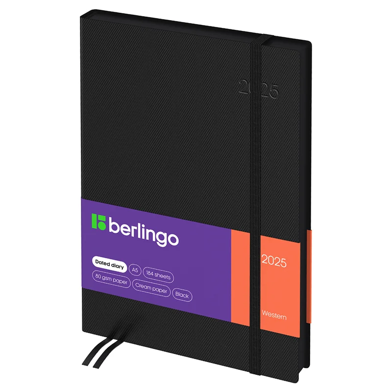Ежедневник датированный 2025г., А5, 184л., кожзам, Berlingo 'Western', черный, с резинкой