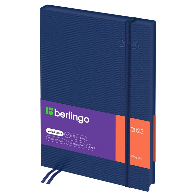 Ежедневник датированный 2025г., А5, 184л., кожзам, Berlingo 'Western', синий, с резинкой