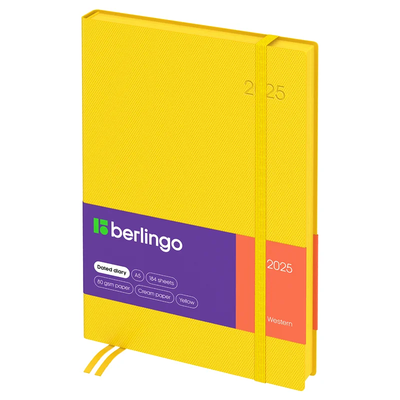 Ежедневник датированный 2025г., А5, 184л., кожзам, Berlingo 'Western', желтый, с резинкой