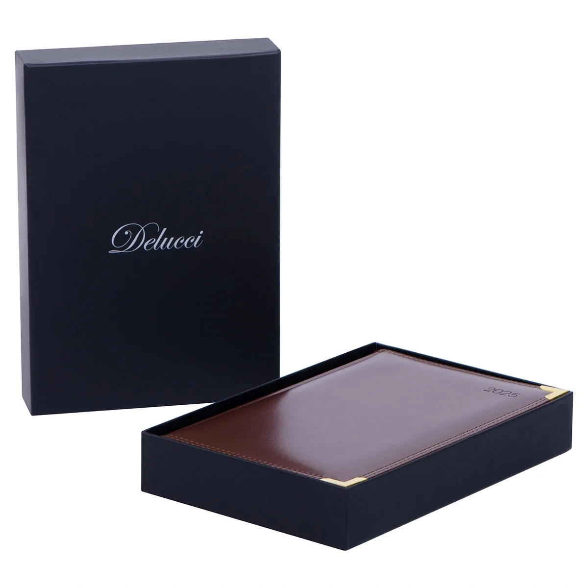 Ежедневник датированный 2025г., А6, 184л., Delucci, Гладкая кожа, зол. срез, коричневый