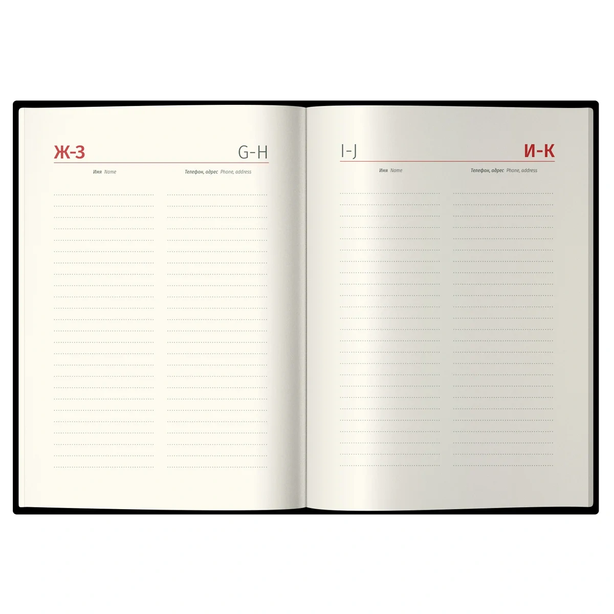 Внутренний блок состоит из 184 листов высококачественной кремовой бумаги повышенной плотности 80 г/м2 с пантонной печатью блока в 2 краски. Блок имеет перфорированные уголки. Справочный материал, 2 удобных закладки-ляссе, отрывные заметки, бланки-извещения о ДТП и вырубной блок по неделям обеспечат комфорт при использовании ежедневника. Изделие подходит под персонализацию. Упаковано в подарочную матовую индивидуальную упаковку. Обладателя ежедневника также порадуют 3 комплекта стикеров.