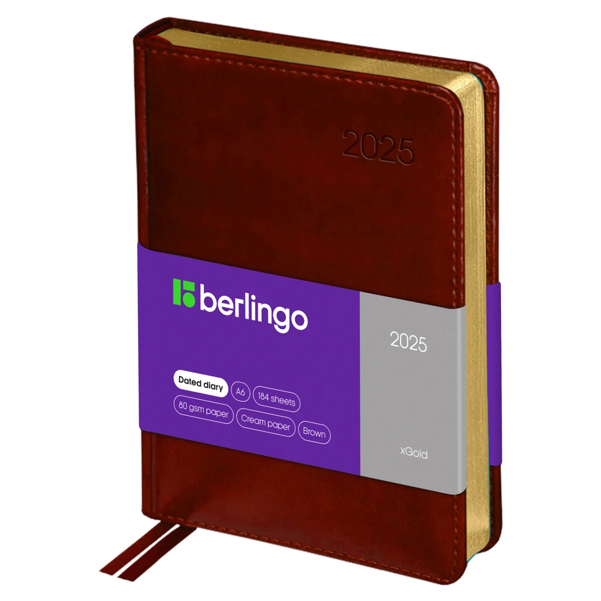 Ежедневник датированный 2025г., А6, 184л., кожзам, Berlingo 'xGold', зол. срез, коричневый