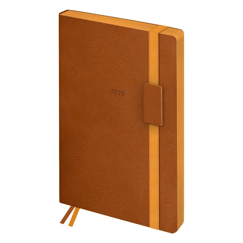 Ежедневник датированный на 2025 год BG 'Personality' формата В5 – это не только практичный помощник, но и стильный аксессуар. Мягкая обложка выполнена из коричневой экокожи и дополнена тиснением.