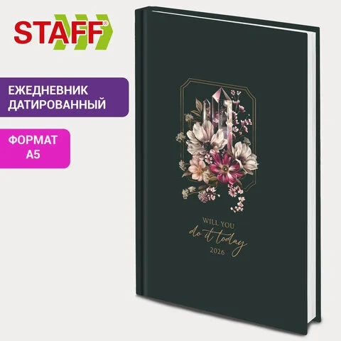 Ежедневник датированный 2026 145х215 мм, А5, STAFF, ламинированная обложка, 'Crystal', 117331