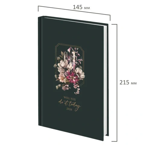 Внутренний блок включает 160 листов белой бумаги плотностью 60 г/м2. Благодаря стандартному формату А5 (145х215 мм) ежедневник удобно использовать как в офисе, так и на выездных деловых встречах. Твердая обложка покрыта глянцевой пленкой. Печать внутреннего блока – в одну краску.