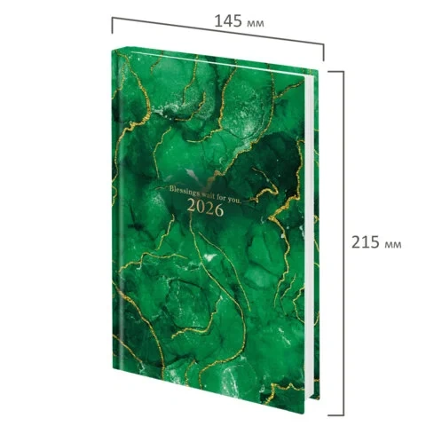 Ежедневник датированный 2026 145х215 мм, А5, STAFF, ламинированная обложка, 'Green Marble', 117315