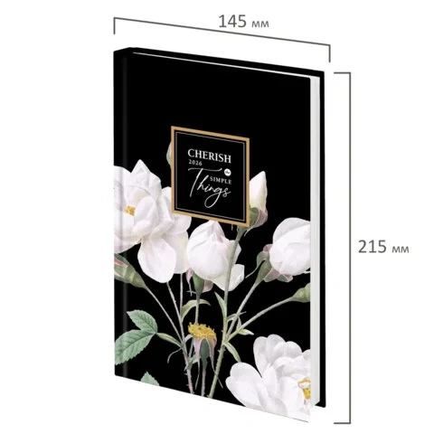 Внутренний блок включает 160 листов белой бумаги плотностью 60 г/м2. Благодаря стандартному формату А5 (145х215 мм) ежедневник удобно использовать как в офисе, так и на выездных деловых встречах. Твердая обложка покрыта глянцевой пленкой. Печать внутреннего блока – в одну краску.