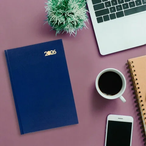 Ежедневник датированный 2026 145х215 мм, А5, STAFF, обложка бумвинил, синий, 117305