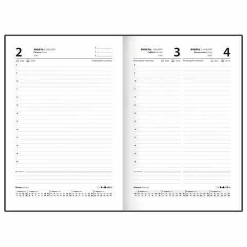 Ежедневник снабжен обширным справочным материалом. В конце имеется 1 страница для записей и заметок.