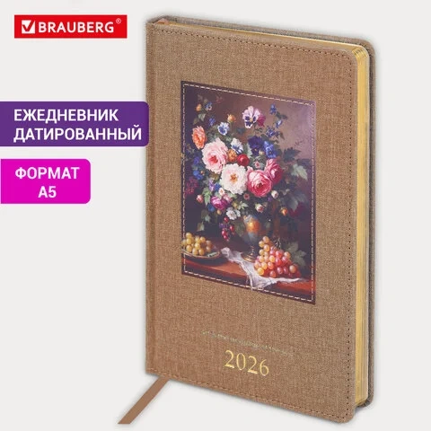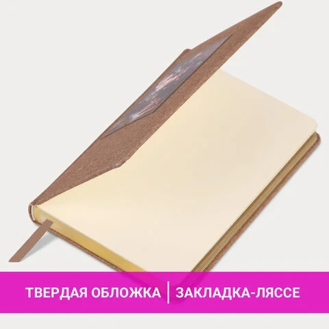 Ежедневник датированный 2026 А5 138х213 мм, BRAUBERG 'ArtGallery', под кожу, нашивка, бежевый, 11740
