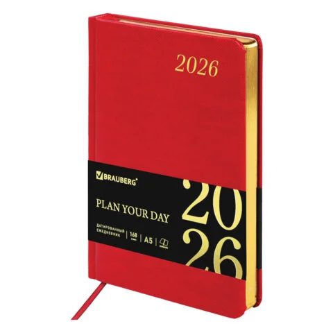 Ежедневник датированный 2026 А5 138x213 мм, BRAUBERG 'Iguana', под кожу, красный, 117055