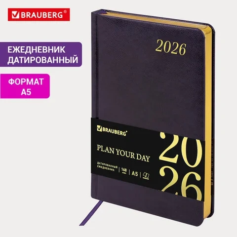 Ежедневник датированный 2026 А5 138x213 мм, BRAUBERG 'Iguana', под кожу, темно-фиолетовый, 117059