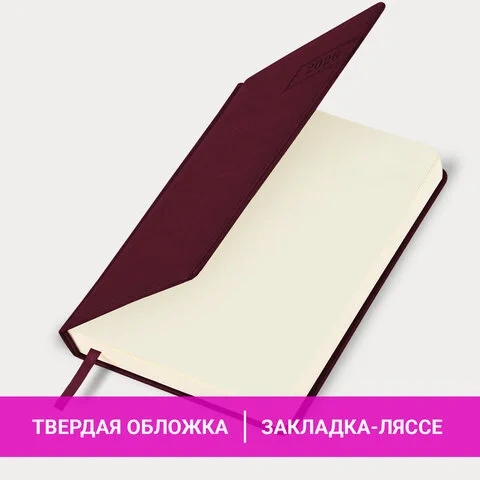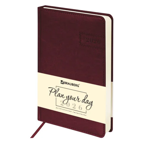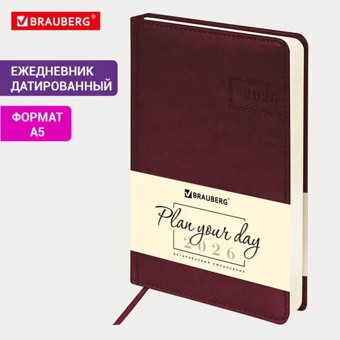Ежедневник датированный 2026 А5 138x213 мм, BRAUBERG 'Imperial', под кожу, бордо, 117060