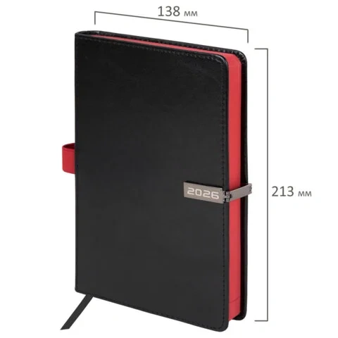 Внутренний блок включает 168 листов белой бумаги плотностью 70 г/м2. Каждая страничка имеет перфорированный угол. Благодаря стандартному формату А5 (138х213 мм) ежедневник удобно использовать как в офисе, так и на выездных деловых встречах.