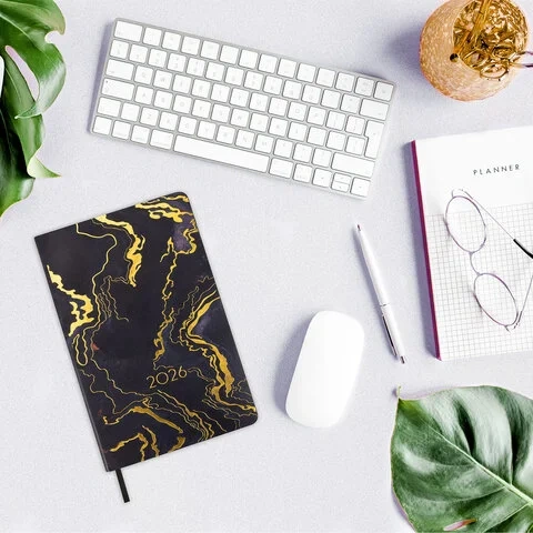 Ежедневник датированный 2026 А5 138x213 мм, BRAUBERG 'Vista', под кожу, гибкий, 'Black marble', 1174
