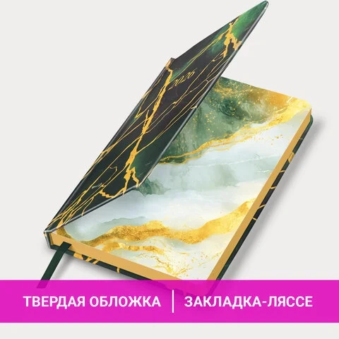 Ежедневник датированный 2026 А5 138x213 мм, BRAUBERG 'Vista', под кожу, твердый, 'Green marble', 117