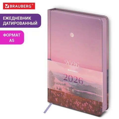 Ежедневник датированный 2026 А5 138x213 мм, BRAUBERG 'Vista', под кожу твердый, 'Serenity', 117459