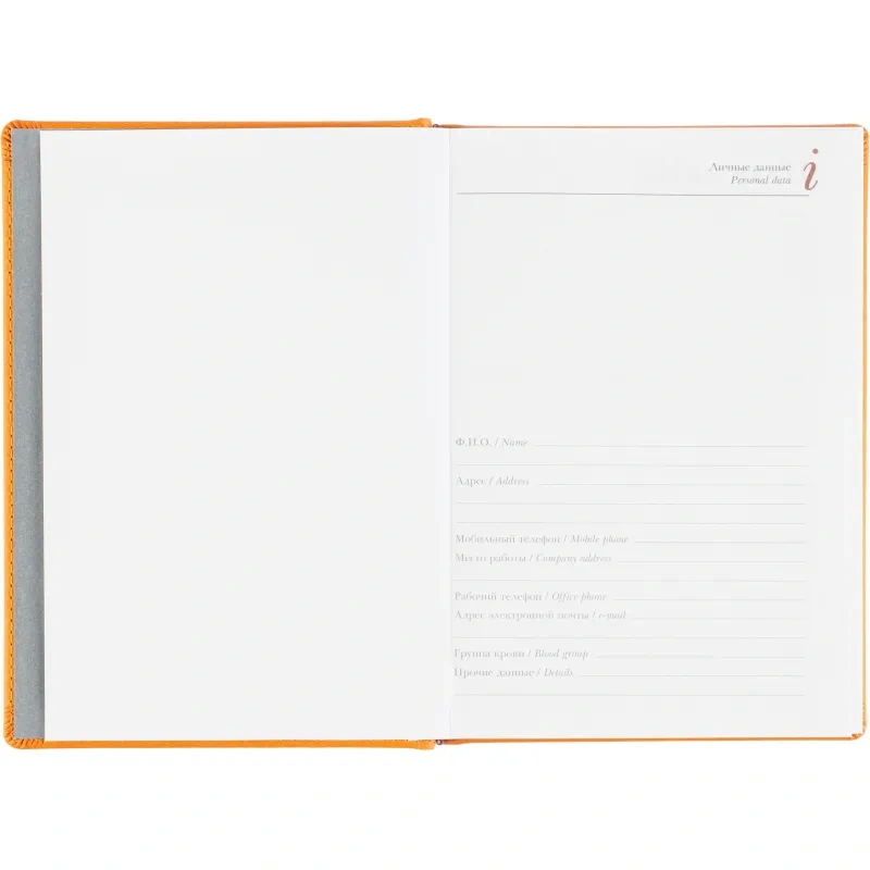Ежедневник датированный 2026 год Attache Velvet предназначен для ведения записей и планирования задач в деловой среде. Модель выполнена в формате А5 и имеет размер 14.6×20.6 см, удобный для ежедневного использования. Обложка из искусственной кожи оранжевого цвета оформлена в однотонном стиле, отличается твёрдой основой и усилена прострочкой по периметру, что повышает прочность и устойчивость к износу. Вертикальная ориентация делает использование ежедневника привычным и комфортным.