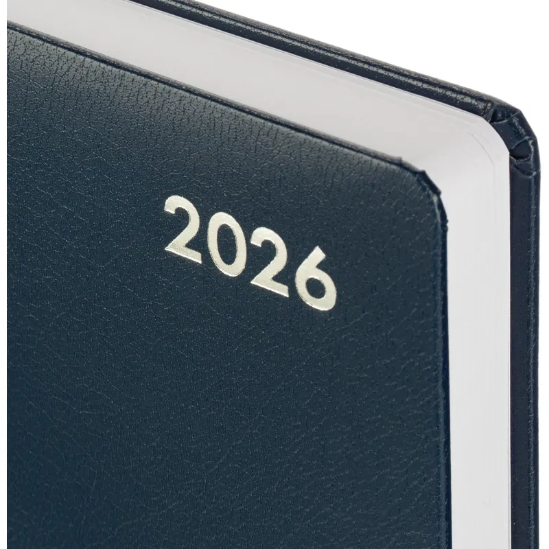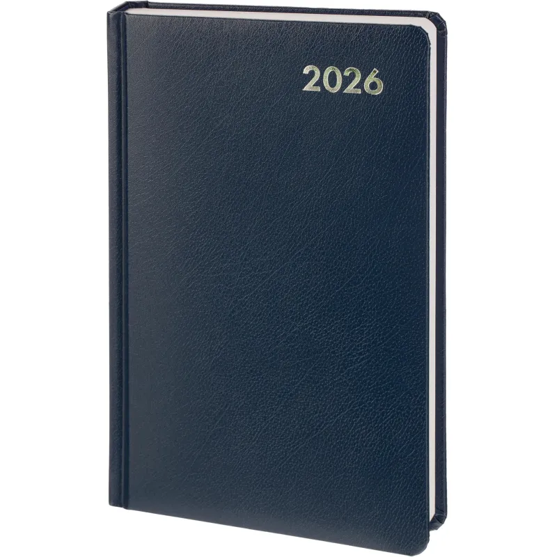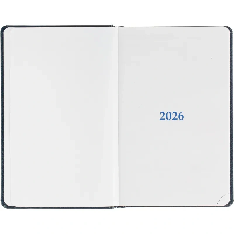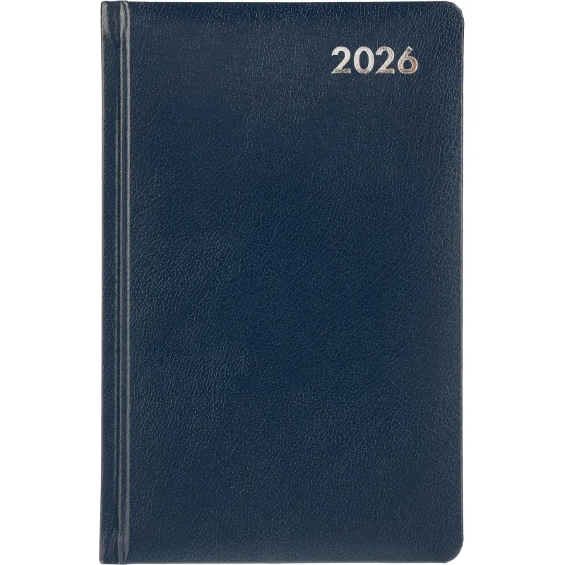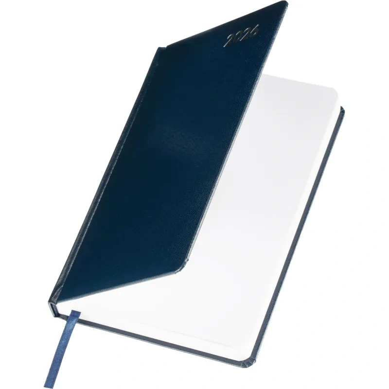 Ежедневник формата A5 предназначен для записей и планирования дел на 2026 год. Обложка выполнена из балакрона синего цвета с тиснением фольгой. Однотонный дизайн и жёсткий переплёт придают изделию деловой вид и обеспечивают удобство в использовании. Крепление блока выполнено сшивкой для надёжности и долговечности.
