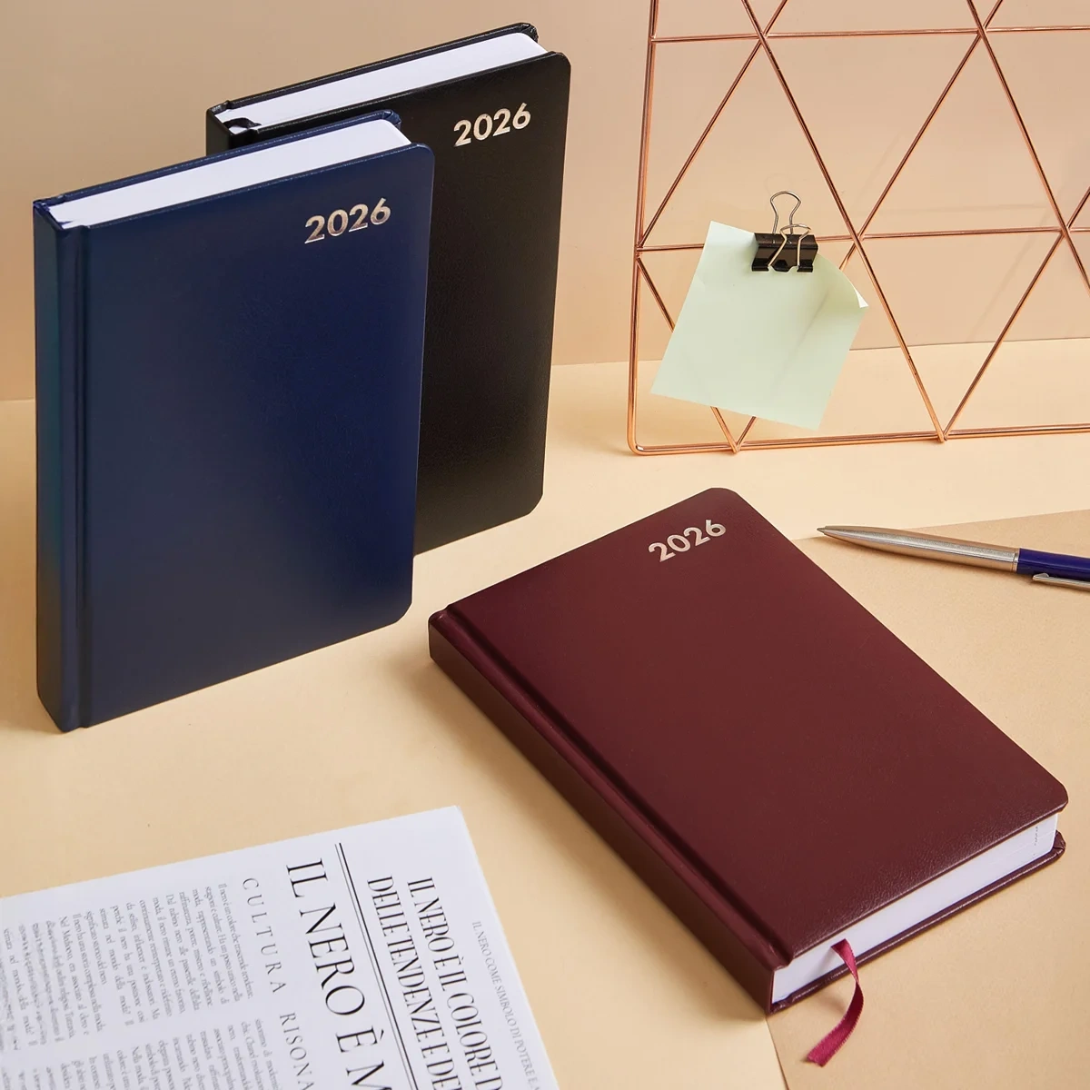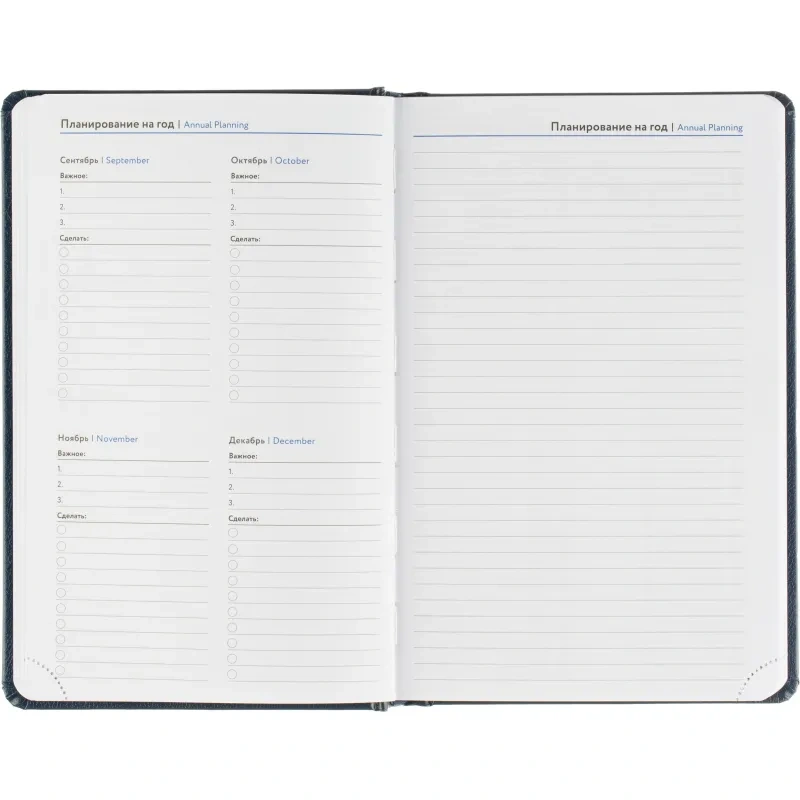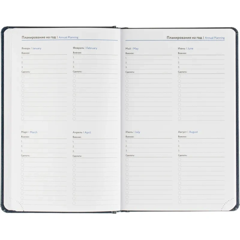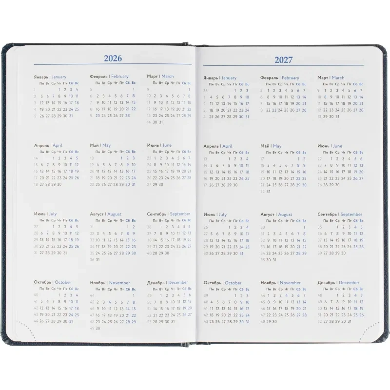 Размер ежедневника — 13.8×21.3 см. Внутри размещён календарь на два года. Изделие подходит под персонализацию.
