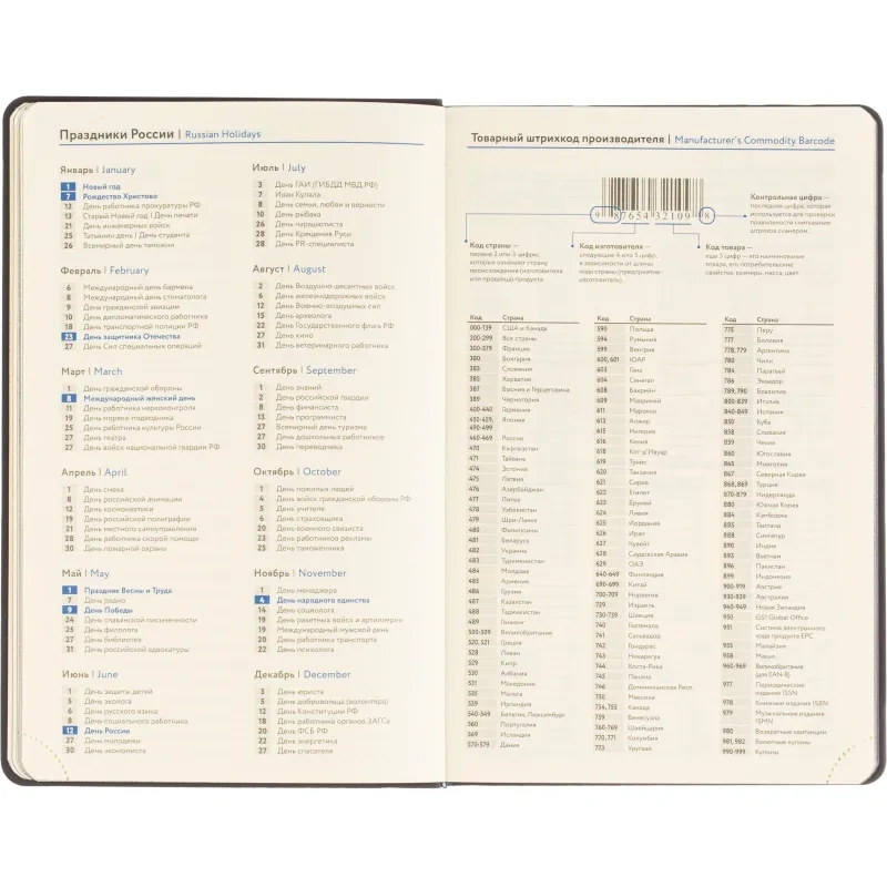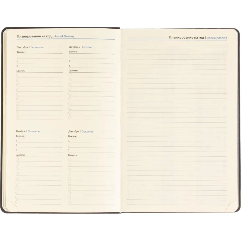 Размер ежедневника составляет 13.8×21.3 см. Внутри предусмотрен календарь на два года. Модель подходит под персонализацию.