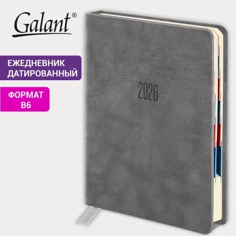 Ежедневник датированный 2026 B6 125х173 мм, GALANT 'Vivid', под кожу, серый, 117410