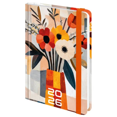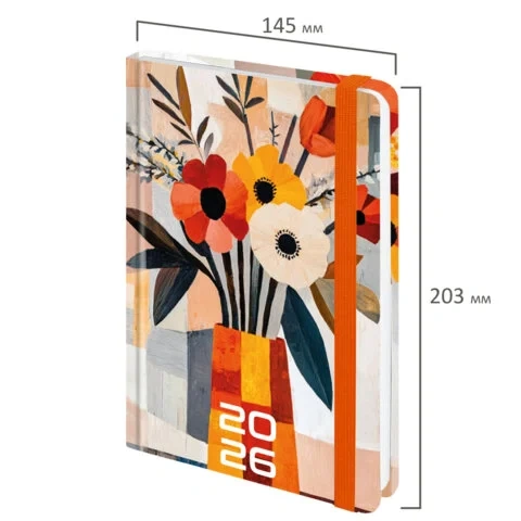 Ежедневник датированный 2026 с резинкой 145х203 мм, А5, BRAUBERG, твердый, 'Букет', 117339