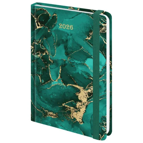 Ежедневник датированный 2026 с резинкой 145х203 мм, А5, BRAUBERG, твердый, фольга, 'Мрамор', 117340
